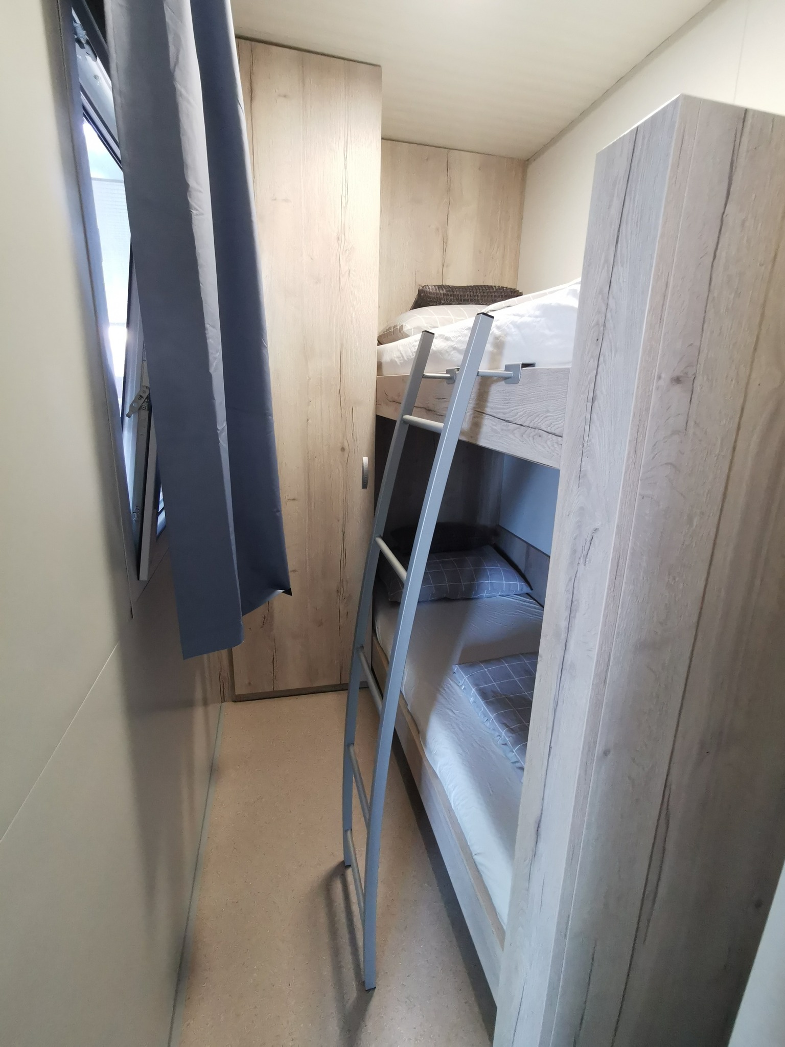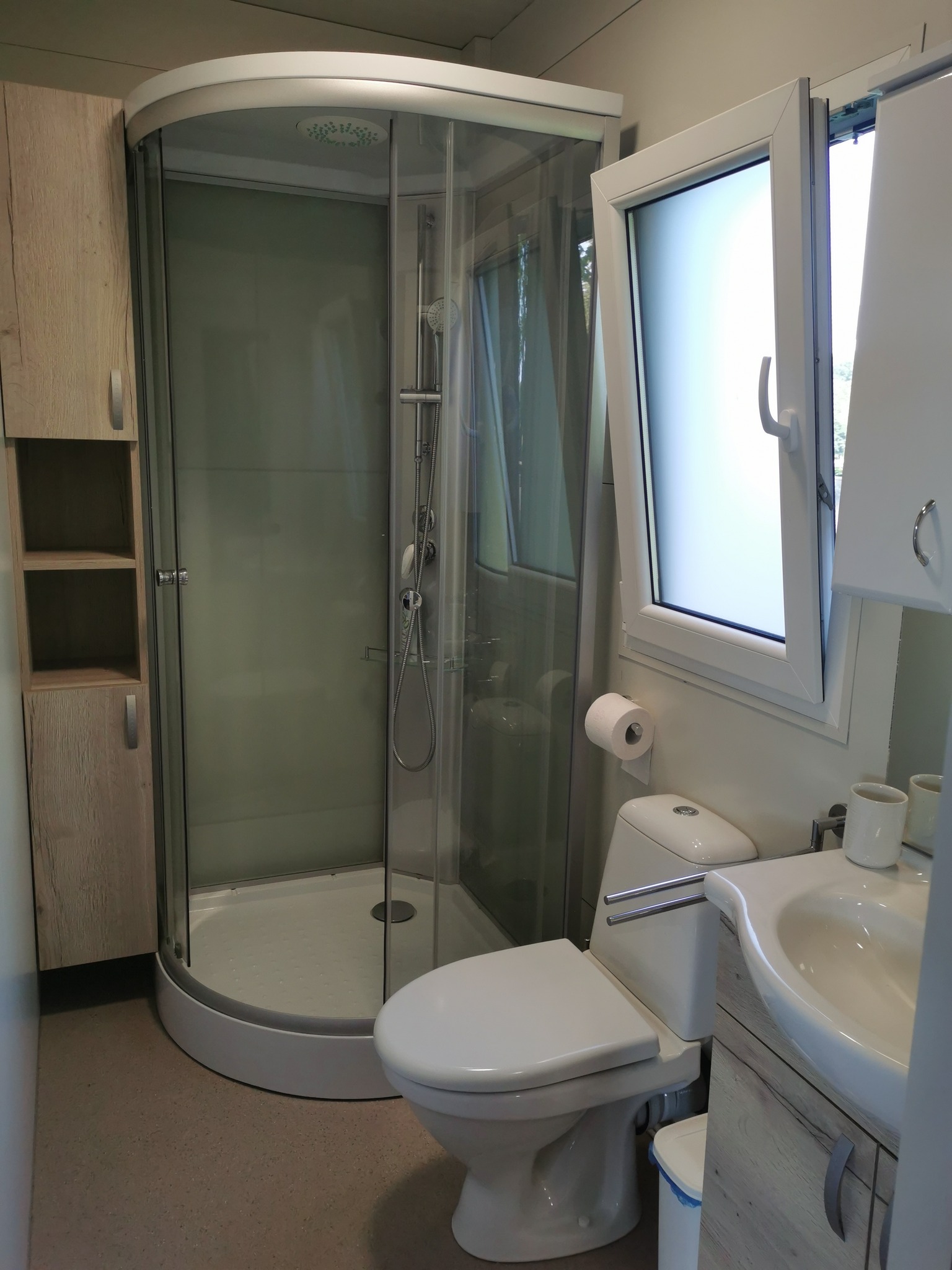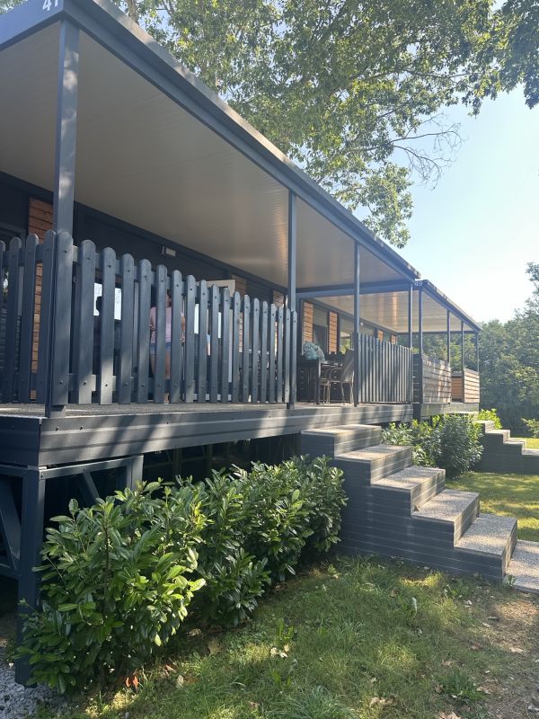 Mobilna hiška s 24 m² in prostorno pokrito teraso je idealna za sproščen oddih. Udobje in mirna lokacija v manjšem kampu, obdana z naravo, vas bosta navdušila in popolnoma sprostila.